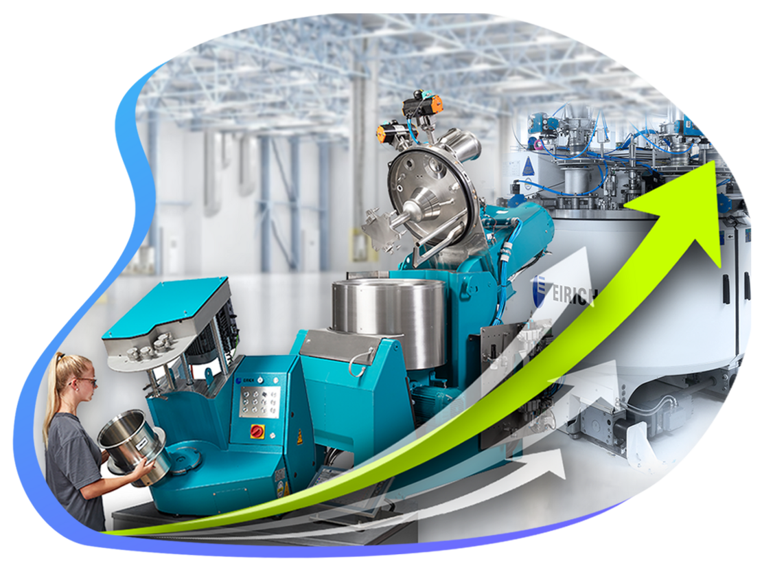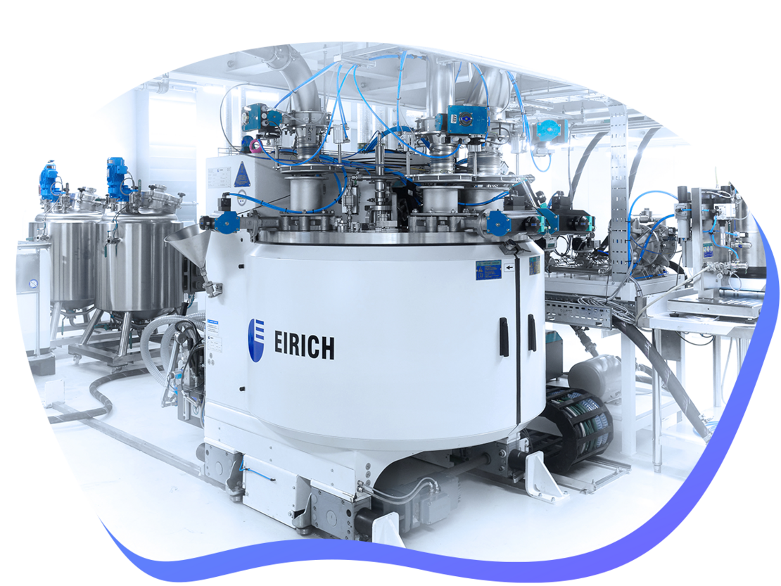 Combinez plusieurs MixSolver© dans votre production et obtenez le débit requis aujourd'hui et pour l'avenir. Pour les boues d'électrodes directement dégazées, nous équipons votre mélangeur de la technologie EvacMix©. Le MixSolver© Eirich est disponible en option avec une enveloppe double pour un processus à température dirigée et avec une protection contre les explosions.