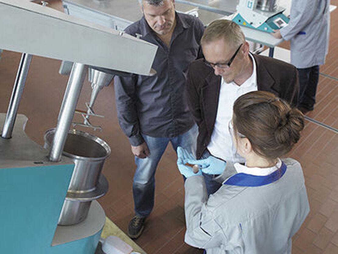 De nombreux clients et utilisateurs profitent de la possibilité que nous leur offrons de réaliser des essais à partir de leurs matières premièresoriginales. À l'échelle industrielle, il est possible de traiter des quantités de matière jusqu'à 500 kg environ par charge ; à échelle réduite, la quantité minimale est de 50 g.