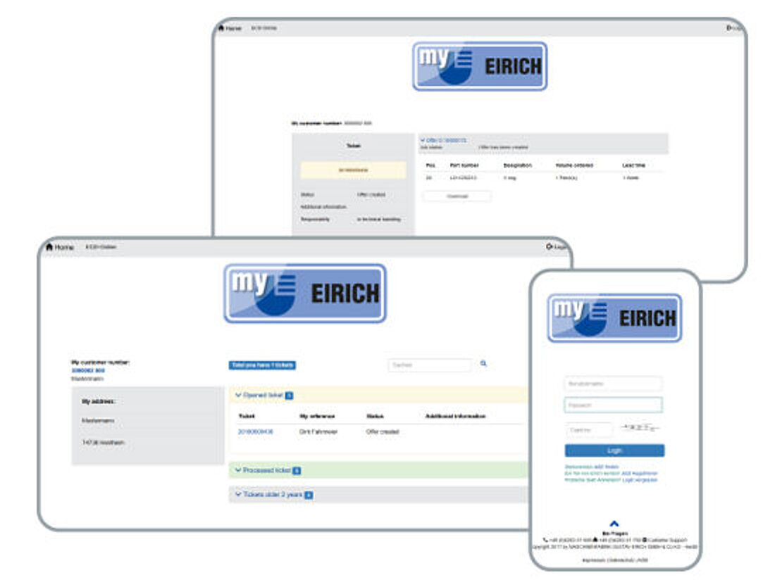 Avec MY-Eirich, vous êtes toujours à la pointe du progrès. Dans l’application en ligne, vous pouvez voir en temps réel l'état de traitement de votre commande de service et constater l’état d'expédition.