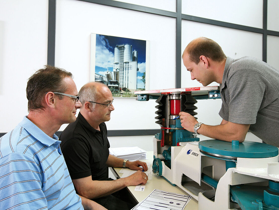 La mise en service et l'accompagnement de la production dans la phase de démarrage des machines et installations constituent la première étape d'un service LifeCycle chez EIRICH. Cette première étape commence systématiquement avec la surveillance du chantier avant la livraison.